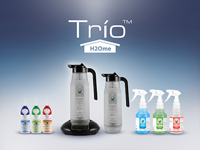 The environmentally friendly and convenient Trio H2Ome generates cleaning solutions usable as a Sanitizer, a Glass and General Purpose Cleaner, and a Heavy-Duty Cleaner and Degrease. Great for cleaning kitchen, bathroom, bedrooms and playrooms without the toxic side effect of traditional chemicals.